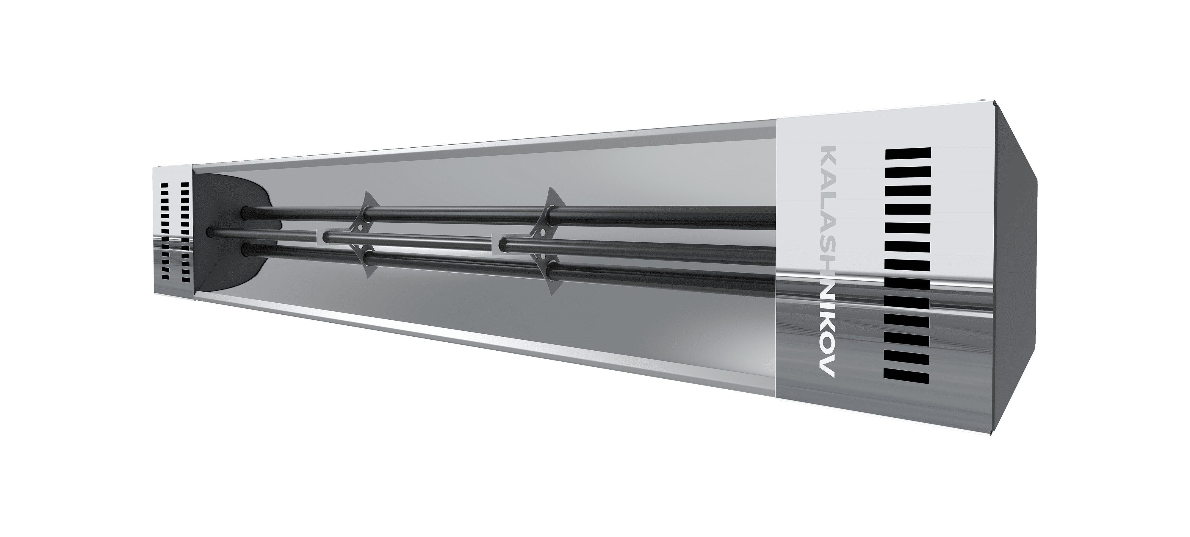 В ассортиментной линейке ИК-обогревателей KALASHNIKOV – панельные обогреватели с алюминиевой анодированной панелью, а также модели с открытыми ТЭНами