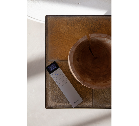 Изогнутая эстетика внутренних блоков перенесена и на новые изящные пульты дистанционного управления. Они отличаются интуитивно понятным интерфейсом и позволяют легко управлять наиболее важными функциями кондиционера. Для удобства пользователей предусмотрено эргономичное крепление пульта ДУ к магнитному держателю на стене. Доступно голосовое управление основными функциями сплит-системы через виртуальных ассистентов «Amazon Alexa» или «Google Assistant». Приложение Daikin «Onecta» помогает контролировать функционирование кондиционера на расстоянии и получать отчёт о потреблении электроэнергии с помощью смартфона или планшета, с использованием локальной сети или интернет.