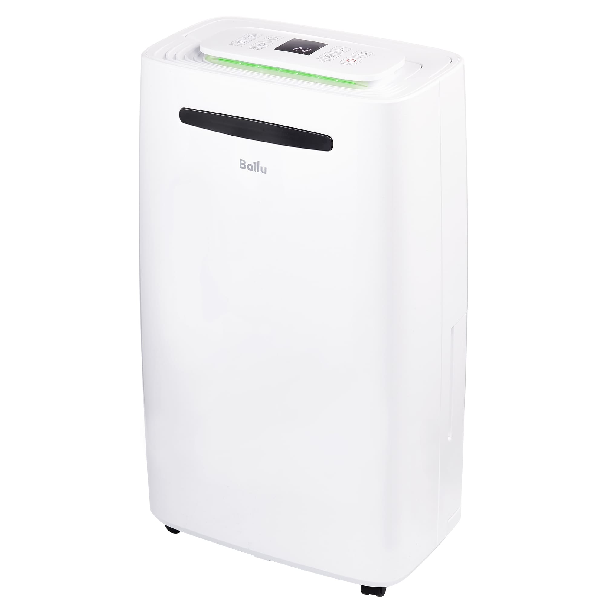 На корпусе Ballu BD20ET имеется дисплей с удобным индикатором влажности и кнопки управления. Оборудование оснащено гигростатом, баком на 5.5 л, дренажным шлангом и удобными колесиками для перемещения. В целях безопасности осушитель дополнен функцией автоотключения.