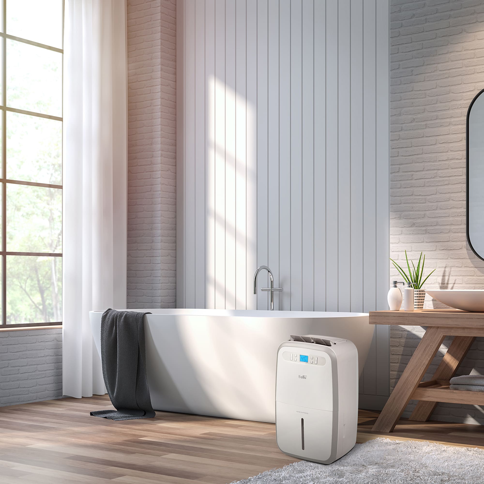 Объём резервуара для сбора конденсата 5,3 л, индикаторная шкала помогает контролировать его наполнение и своевременно сливать жидкость. Для удобства переноса осушитель оснащён ручкой. Лаконичный строгий дизайн впишется в любой современный интерьер.