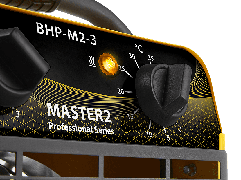 Самая мощная 40 кВт модель серии Master 2 дополнительно к остальным преимуществам серии комплектуется трёхскоростным вентилятором, позволяющим регулировать производительность по воздуху. Поставляется на колёсном шасси для удобного перемещения.