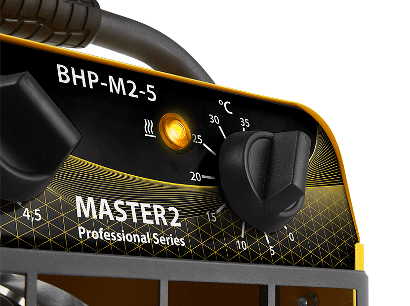 В приборах серии применяются электрические компоненты с большим ресурсом работы, высокоточный капиллярный терморегулятор и защитный термостат с функцией блокировки автоматического включения в случае перегрева. Тепловентиляторы Master 2 предназначены для непрерывной работы 24/7 в самых суровых условиях эксплуатации, даже при отрицательных температурах до -30°С. Новая опора-трансформер с увеличенным «дорожным просветом» (тепловентилятор можно ставить на строительный мусор и в грязь) или возможностью наклона.
