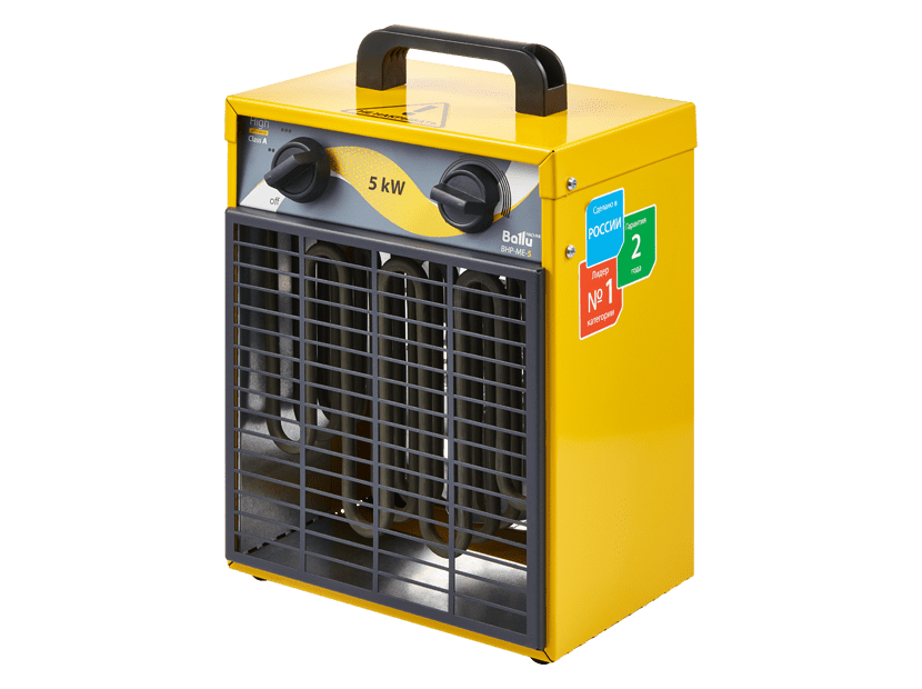 Тепловая пушка электрическая Ballu BHP-ME-5 мощностью 4,5 кВт предназначена для общего обогрева строящихся, ремонтируемых объектов и помещений площадью до 50 м² При компактных размерах пушка обладает производительностью 400 м³/час, что способствует равномерному распределению температуры в помещении и позволяет эффективно обогревать даже самые труднодоступные места. Особая форма ТЭНов позволяет достичь максимальной эффективности в работе. Выгодное предложение по самой привлекательной цене можно выбрать на основе отзывов в официальном интернет-магазине Ballu.